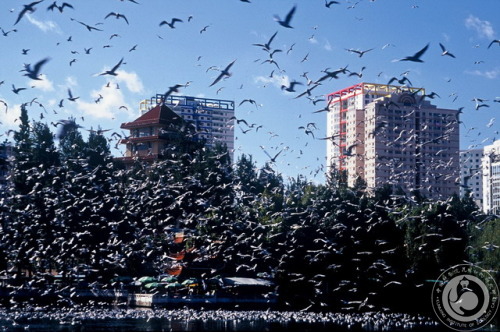 历史上红嘴鸥Larus ridibundus每年都飞到昆明滇池及其周围水域越冬。但由于滇池浅水区域大部被农田、水葫芦所覆盖,水体被污染,滇池水域中的鱼虾等供鸥类觅食的食物减少等原因,致使红嘴鸥飞入市区水域觅食。1985年11月,越冬的红嘴鸥首次光临了昆明市区,人们扶老携幼或举家迁往观鸥和喂鸥,此后年复一年红嘴鸥如期飞来。而每年冬季进城享受人们热情招待的红嘴鸥数量也由6千余只,增加到2万多只。每年观鸥、赏鸥和喂鸥成了春城人冬季的一大情结,红嘴鸥也成为昆明人生活中的一个重要部分。