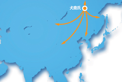 在采访中,芒教授为我们绘制了一幅“犬鹿氏”三次迁徙的线路图。在距今约1.35万年前的第一次大迁徙中,“犬鹿氏”中有一支沿鄂霍次克海经白令海峡远抵美洲大陆北部,成为印第安人的祖先。“犬鹿氏”在距今约1万年前的第二次大迁徙中,一支向东沿松花江流域和黑龙江上游到达东北平原和辽东半岛,成为肃慎人和朝鲜人的祖先;一支沿伊敏河流域、嫩江流域和大兴安岭东麓南下到达辽河流域,成为东胡、鲜卑人的祖先;一支从额尔古纳河流域向西进发,沿克鲁伦河逆流而上到达鄂嫩河流域,成为乞颜和鞑靼人的祖先。到了距今约8000~5000年前的第三次大迁徙中,“犬鹿氏”分5路向西、北、东、南和中原地区进发,历经2000多年,遍布亚洲的“犬鹿氏”分别形成各具文化特色的氏族和部落,以不同名称出现在史前时代的历史舞台上。约在4500年前,炎帝与蚩尤、黄帝与蚩尤、炎帝与黄帝之间的大规模部落战争,导致黄河流域“犬鹿氏”后裔的第一次大融合。夏、商、周时期,中原地区由奴隶制转入封建制,使分散在各地自行发展的“犬鹿氏”后裔实现第二次大融合,华夏民族在这次大融合中形成。根据芒教授的理论,我们得到一幅中国人起源的“南下图”,这恰好与中国祖先“北上”的推断截然相反。