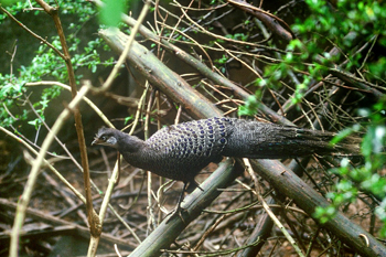 属国家Ⅰ级重点保护野生动物和《濒危野生动植物种国际贸易公约》(CITES)附录Ⅱ物种。栖息于热带雨林和季雨林中,常单独或成对活动。以植物的种子等为食,也取食昆虫等动物性食物。繁殖期在3~6月,巢营于隐蔽条件好的稠密植物丛中,在挖好的浅坑或自然凹陷地上放置少量干叶即成。云南南部和西南部有分布,为留鸟。