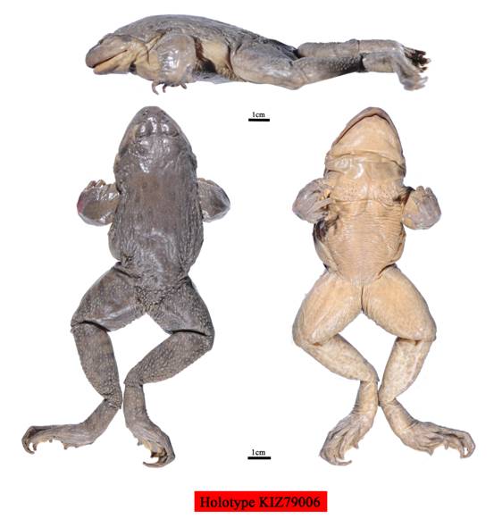 原始文献:苏承业, 利思敏. 云南蛙属一新种——无声囊棘蛙. 两栖爬行动物学报, 1986, 5(2): 152-154.