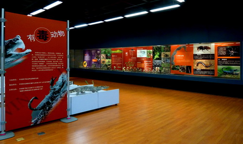 经过两年多的认真筹备,国庆期间昆明动物博物馆将举行“有毒动物展览”。展出的有毒动物近八十种,其中两栖类十五种,爬行类三十一种,无脊椎动物三十一种。所有有毒动物全部由博物馆工作人员野外采收,摄影,整理,制作而成,并以图文并茂的方式对有毒动物的毒性知识进行介绍。本次展览旨在普及常见的有毒动物的科普知识,提高大众对有毒动物的识别能力,加强对有毒动物的防范意识。