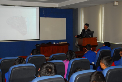 2011年1月30日,春城昆明充满了浓郁的节日气氛。昆明动物博物馆新年前的最后一次科普活动也在新年的喜庆中结束。博物馆科普副馆长熊江研究员为中国科学院天地生科学文化传播中心组织的“中科院英才云南行”中学生同学做了一场别开生面的“昆虫故事”专题讲座。现场的观众不仅包括北京来的中学生,还有我馆的部分志愿者和其他来馆参观者。