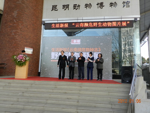 2012年1月6日,昆明动物博物馆和生活新报在馆内联合举办“云南濒危野生动物图片展”,这是双方合作近半年以的总结和回顾。生活新报社长魏源海,云南省绿色环境发展基金会理事长陈继海,中国联通云南分公司营销部副总监陈剑峰,中科院昆明动物所动物博物馆副馆长张丽坤等领导在幕式上致词。
