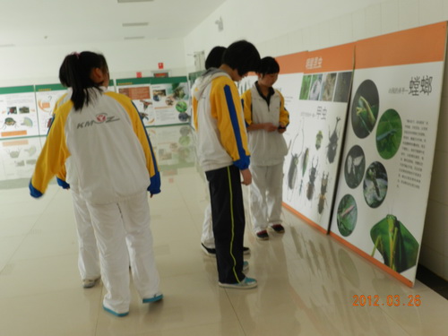 在讲座教室另一端的大厅里,“走近昆虫”主题展板静静地伫立着。展板上丰富而有趣的昆虫知识、优美的说明文字和各式各样鲜活生动的昆虫生态图片,牢牢地hold住了同学们好奇的目光。同学三三两两相约走近展板,饶有兴趣地观看着大自然中各种奇妙的昆虫,不时抒发着他们与昆虫亲密接触的万千感受。