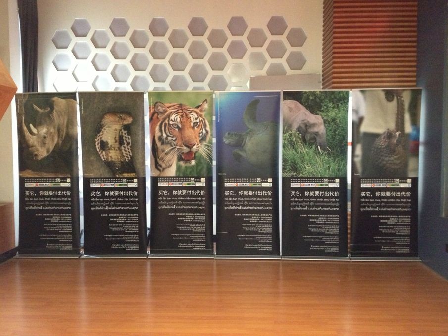 为了向群众普及濒危物种保护的知识,让大家能够有意识、自觉的参与到野生动物的保护中来,近日在原有宣传橱窗的基础上,双方又携手新增设了主题为“买它,你就要付出代价”的海报,该海报由国家林业局驻云南森林资源监督专员办公室、国家濒危物种进出口管理办公室昆明办事处、昆明海关等各相关单位联合印制。海报选取了六种代表性野生濒危动物,使用四种语言同时表达“买它,你就要付出代价”这一主题,极具视觉震撼力和感染力。由国家濒管办等单位联合印制的有关中国野生动植物进出口管理相关政策和CITES公约关注蛇、蛙类动物保护的宣传册也被放置在显著位置,参观者可以随手带走传阅。