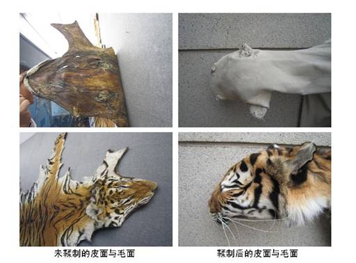 鞣制与未鞣制的虎皮情况对比