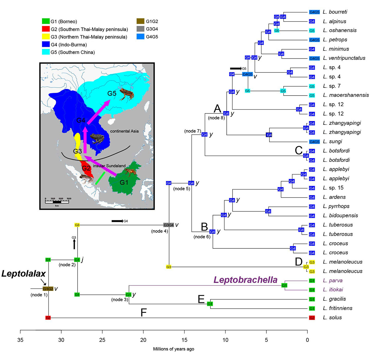 图3:掌突蟾属的生物地理演化历程(Chen et al., 2018)