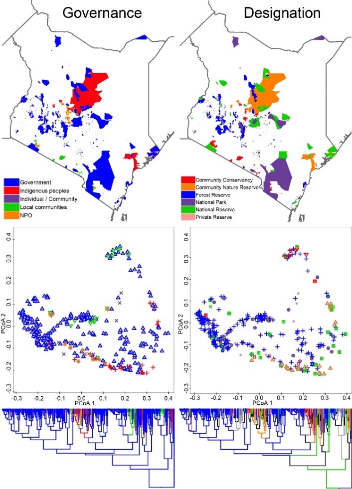 图1 肯尼亚保护地陆生哺乳动物在管理和类型之间的分布图