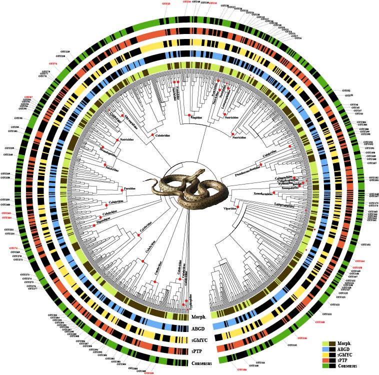 此次,基于系统的野外考察和长期的积累,电子游戏app下载安装车静研究组,联合国内多家单位科研人员开展了广泛的合作交流,结合NCBI已发表数据,首次系统性构建了中国蛇类DNA条形码参考数据集(COI),对中国蛇类多样性进行了评估。该研究涉及228个已知物种,占已描述物种的80.6%,覆盖了中国大部分区域。