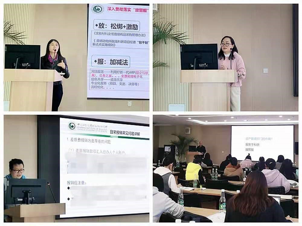 随后财务资产部部长李亚娥结合新形势,言简意赅地介绍了“放管服”背景下财务资产部现阶段取得的工作成效及未来服务举措,强调在目前形势下大家应重点关注“过紧日子和预算执行”、加强“科研经费管理和合同管理”等问题。会上,财务资产部人员张赛梅、郑南、张再红分别就项目经费管理政策及常见问题、日常报销业务注意事项及常见问题、日常资产管理注意事项及常见问题等方面进行了详细讲解,会议尾声与会人员就日常工作中遇到的实务问题进行了交流讨论。