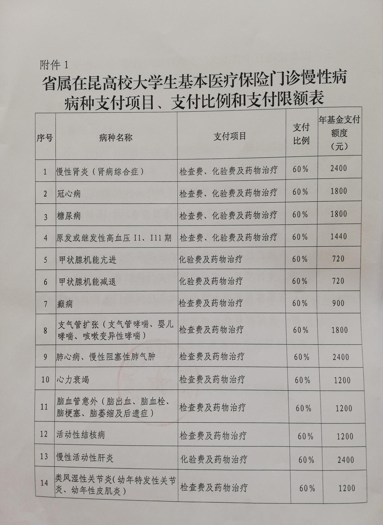(一)慢性病病种及待遇标准:门诊慢性病病种14种,报销比例统一为60%,对不同慢性病病种分别设置报销限额(见附件1)。